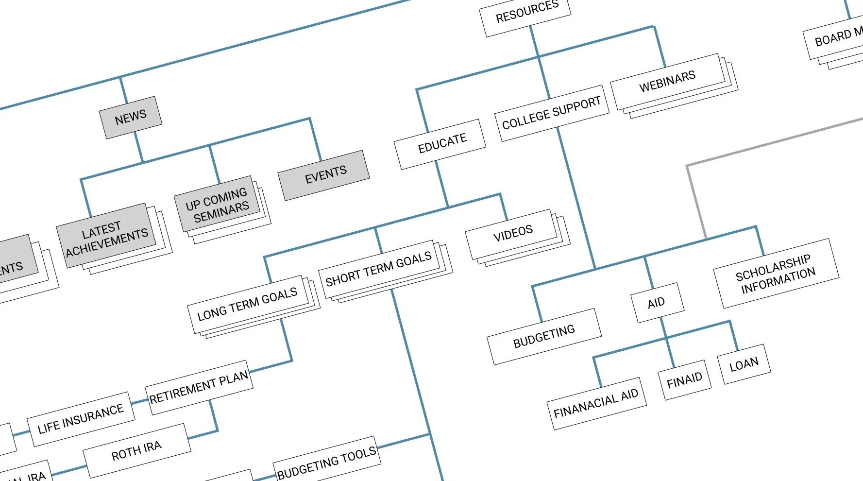 Applying the insight from the tree-jack testing, we fine-tuned the information architecture. Below is a little snippet of the IA.